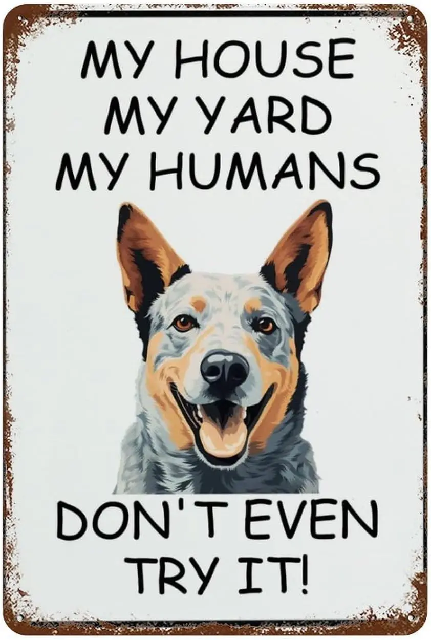 1a, забавная винтажная жестяная вывеска, австралийская собака крупного рогатого скота, мой дом, мой двор, мой человек, домашняя собака, металлическая жестяная вывеска в стиле ретро, винтажная алюминиевая вывеска Fo