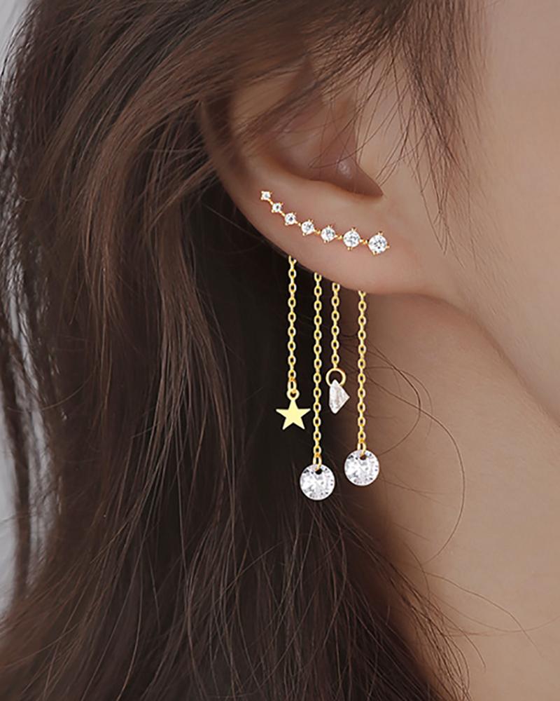 1pair Rhinestone Decor Star Pendant Chain Earrings, Gold