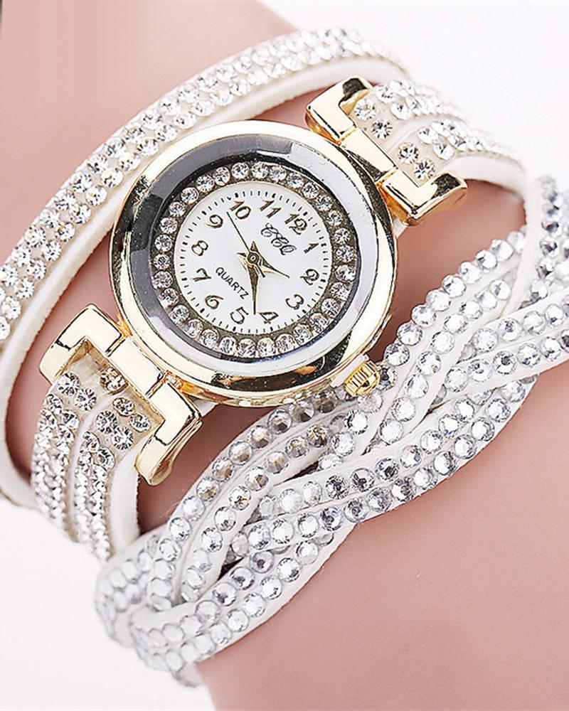 1pc Allover Rhinestone Braided Bangle Quartz Watch, White