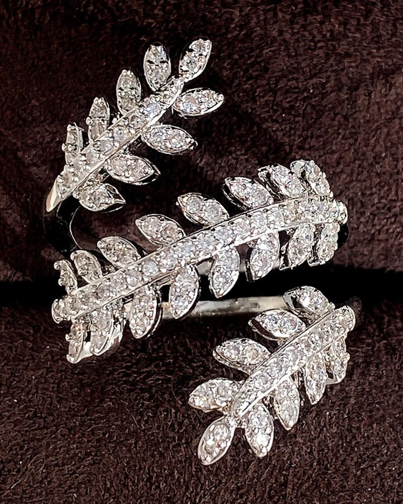 1pc Creative Design Leaf Vine Open Ring Wedding Bridal Party Jewely, White