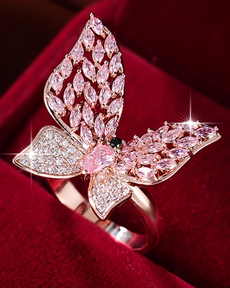 1pc Crystal Stone Butterfly Pattern Fashionable Ring, Pink