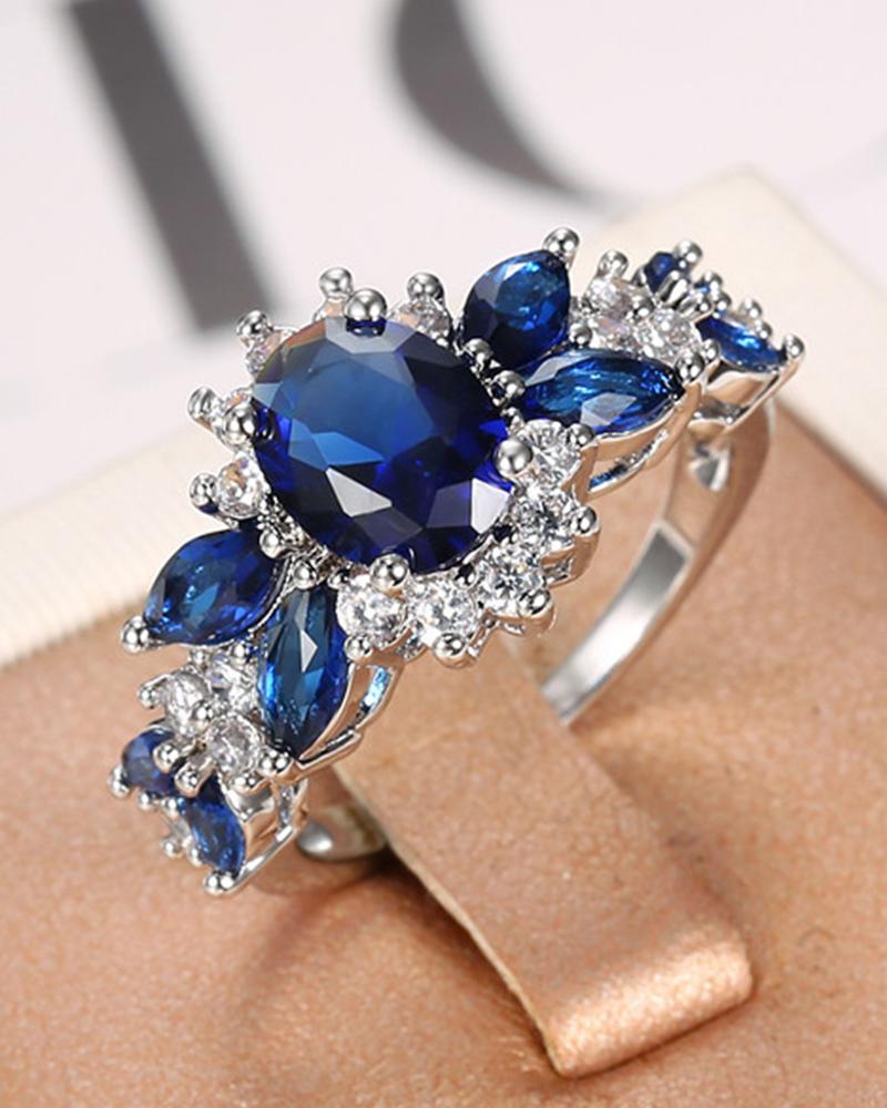 1pc Crystal Stone Rhinestone Decor Ring, Blue