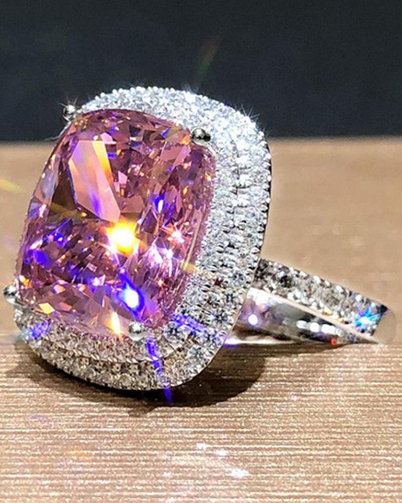 1pc Faux Zircon Rhinestone Square Wedding Ring, Pink