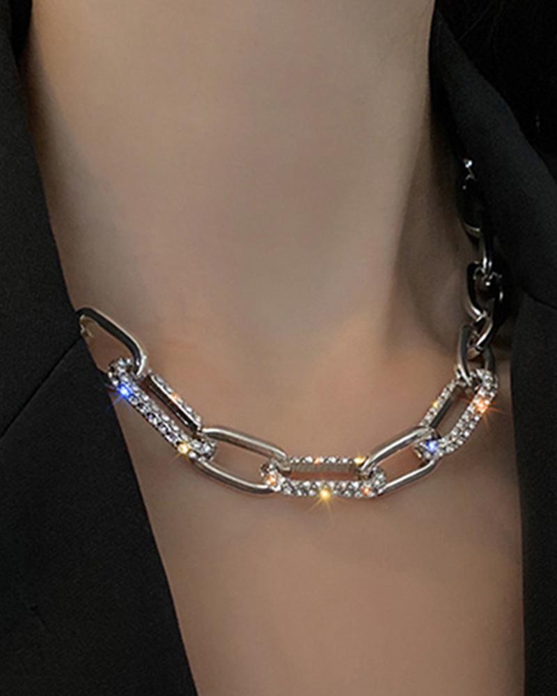 1pc Geometric Rhinestone Decor Chain Necklace, Silver