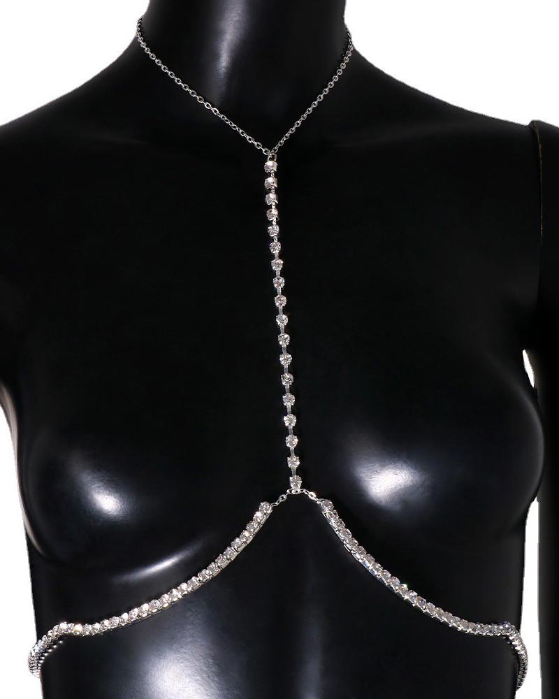 1pc Halter Rhinestone Bra Body Chain, Silver