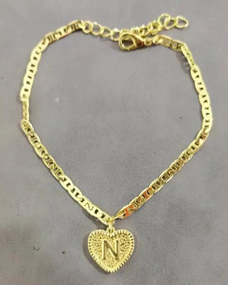 1pc Heart Shaped Letter Embossed Chain Anklet, Style13