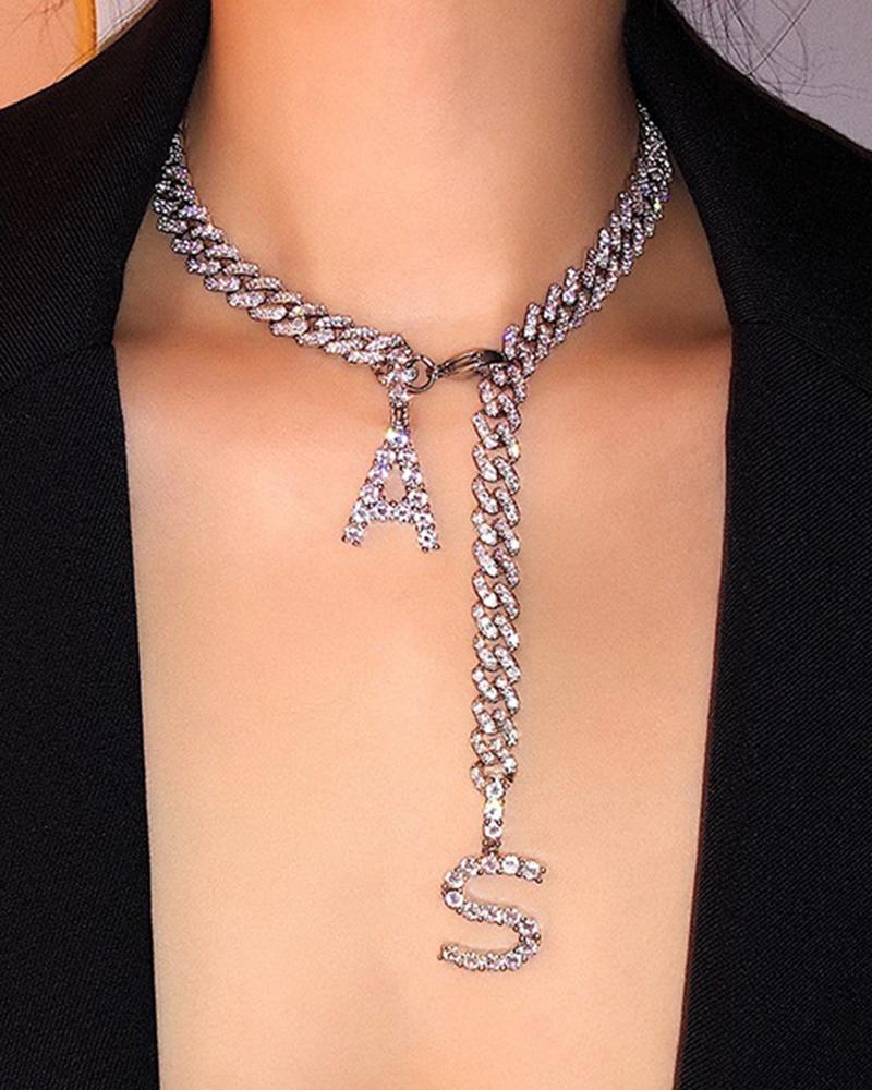 1pc Letter Pattern Rhinestone Decor Chain Choker Pendent Necklace, Silver