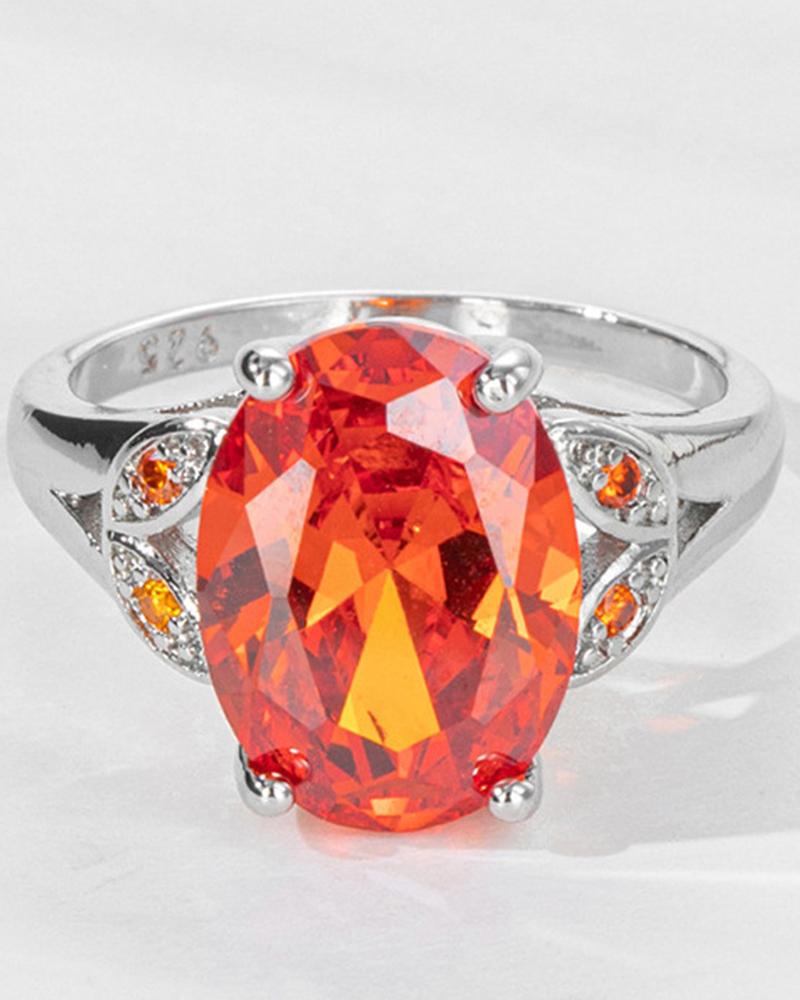 1pc Oval Crystal Stone Rhinestone Decor Ring, Orange