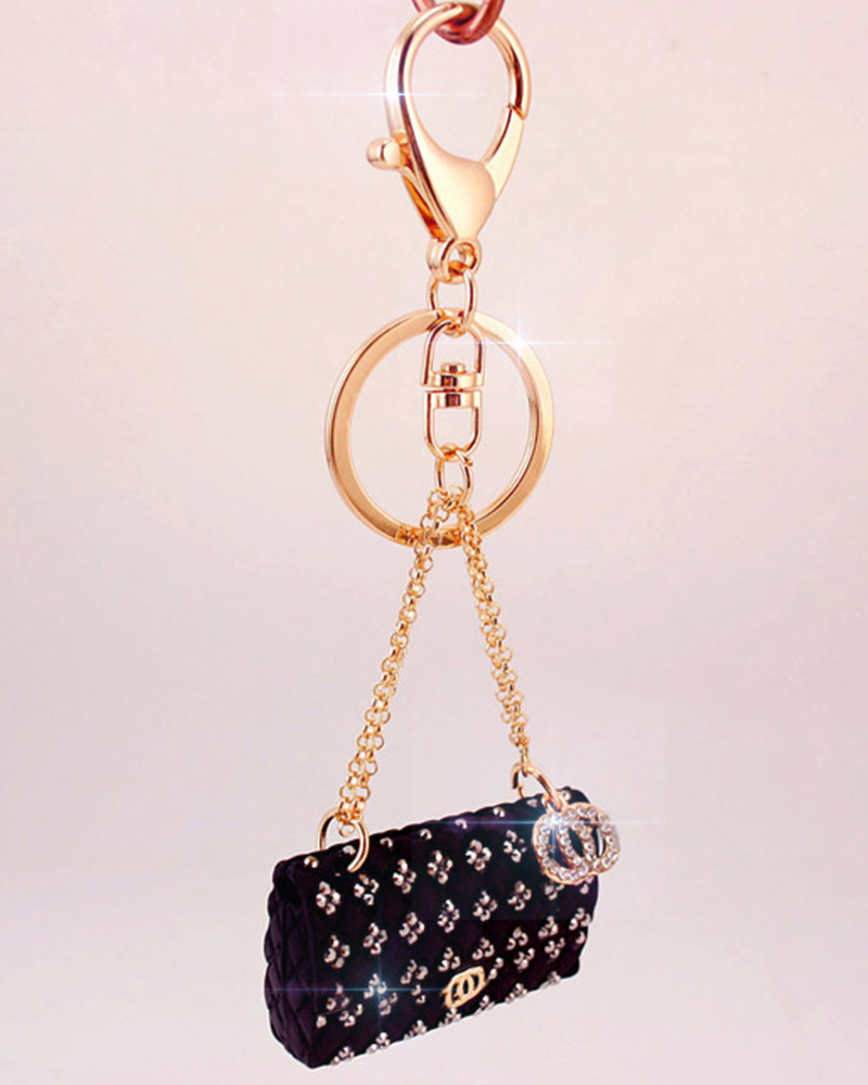 1pc Rhinestone Bag Design Charm Keychain, Black