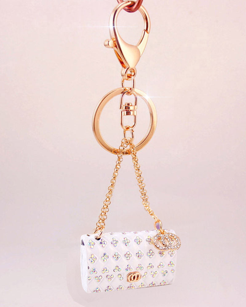 1pc Rhinestone Bag Design Charm Keychain, White