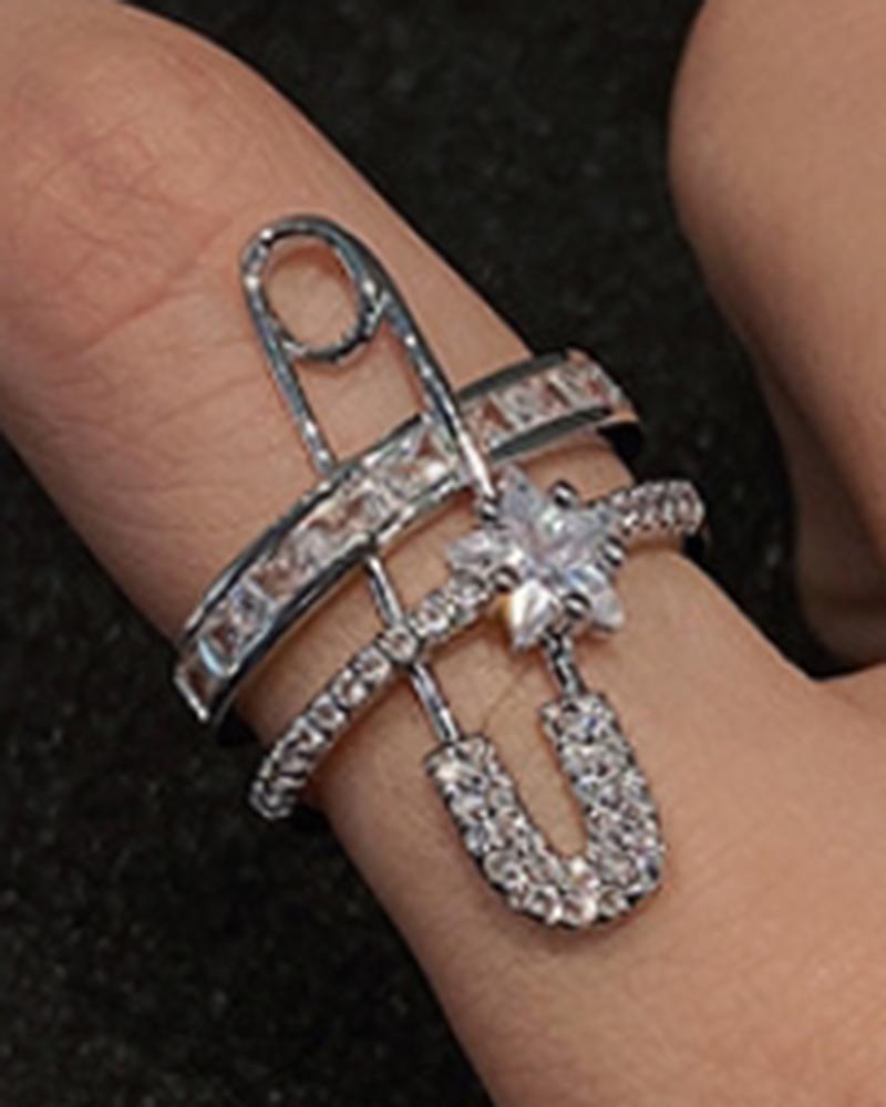 1pc Rhinestone Brooch Decor Star Pattern Ring, Silver