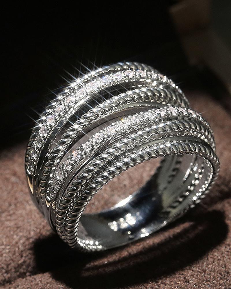 1pc Rhinestone Crisscross Fashion Ring, White
