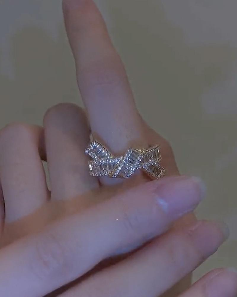 1pc Rhinestone Decor Cuff Ring, Silver