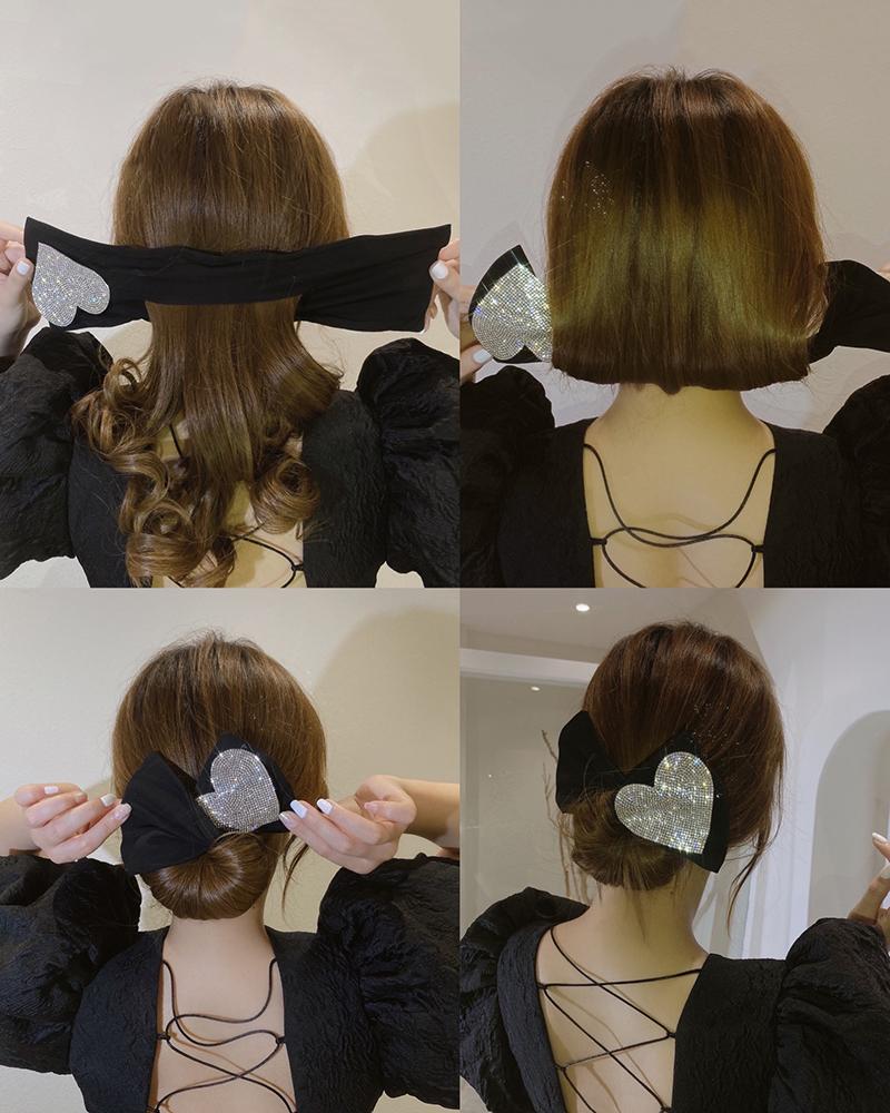 1pc Rhinestone Decor Heart Pattern Hair Claw, Black