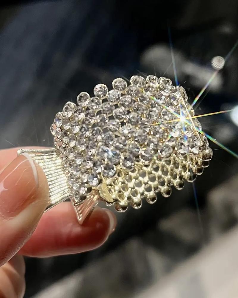 1pc Rhinestone Decor Ponytail Hair Claw Clip, Gold