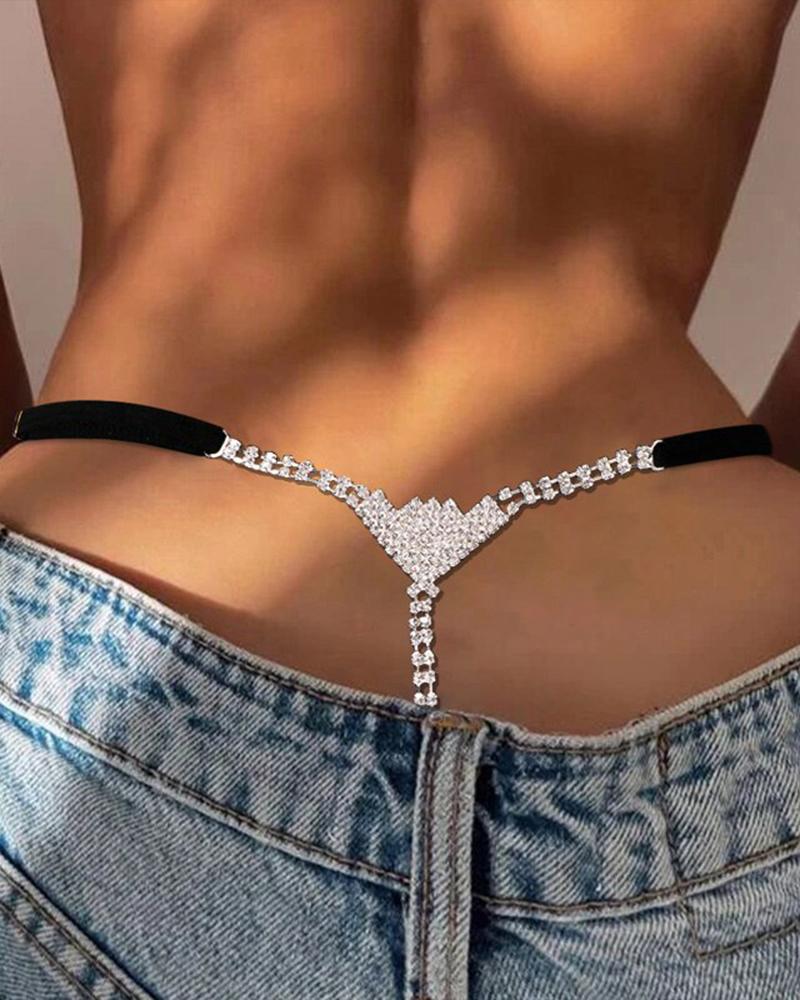 1pc Rhinestone Geometric Chain Decor Chain Decor Thong Panty, Silver