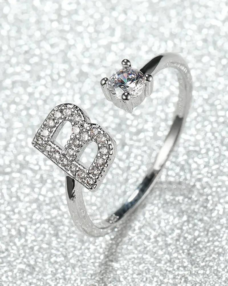 1pc Rhinestone Letter Shaped Opening Ring, Style2