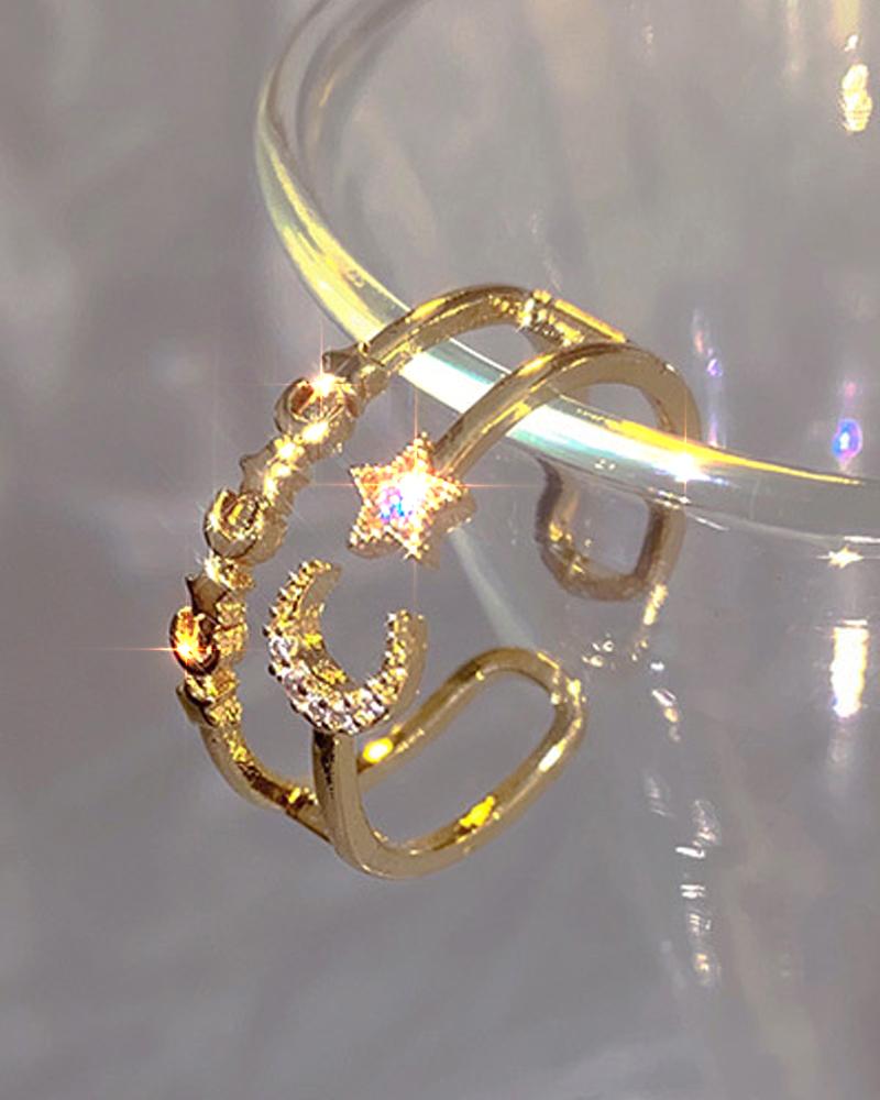 1pc Rhinestone Star & Moon Decor Cuff Ring, Gold
