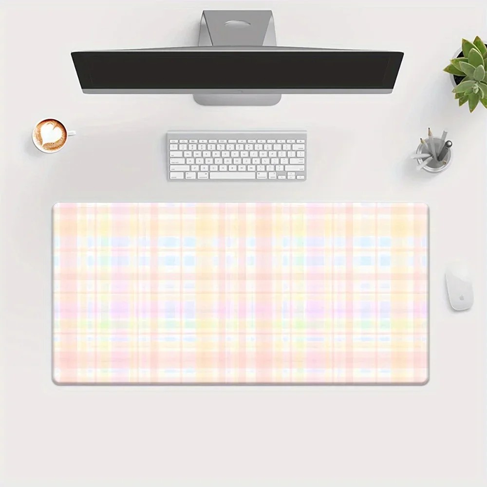 1pc Simple Style, Pink Grid Pattern HD Printed Pad for Desk, Multi Functional XXL Mousepad, Keyboard Gaming Mouse Mats, Office C