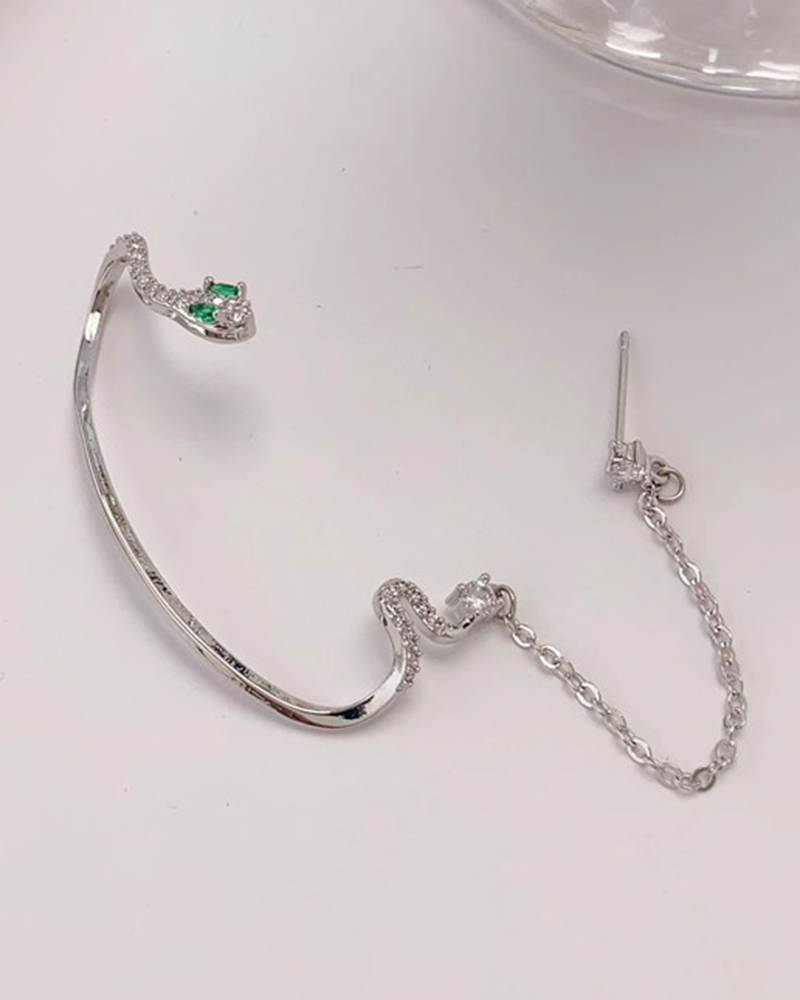 1pc Snake Shaped Rhinestone Ear Climber, Style2