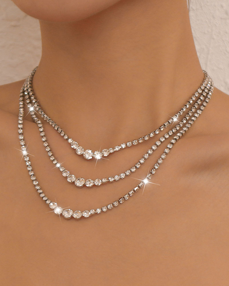 1pc Sparkling Rhinestone Layered Chain Necklace, Silver