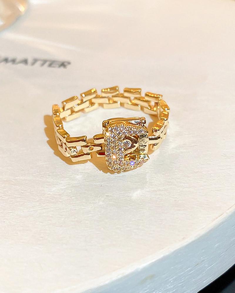 1pc Square Geometric Rhinestone Chain Ring, Gold