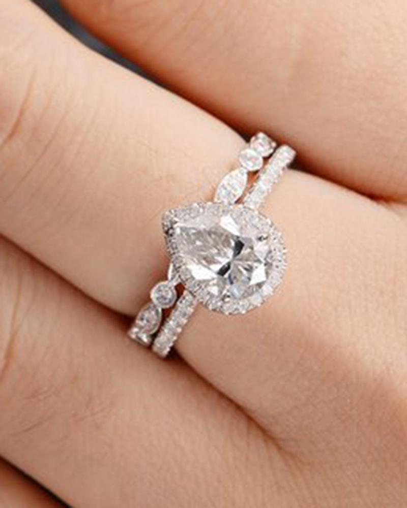 1pc Stackable Rhinestone Waterdrop Shaped Wedding Ring, Silver