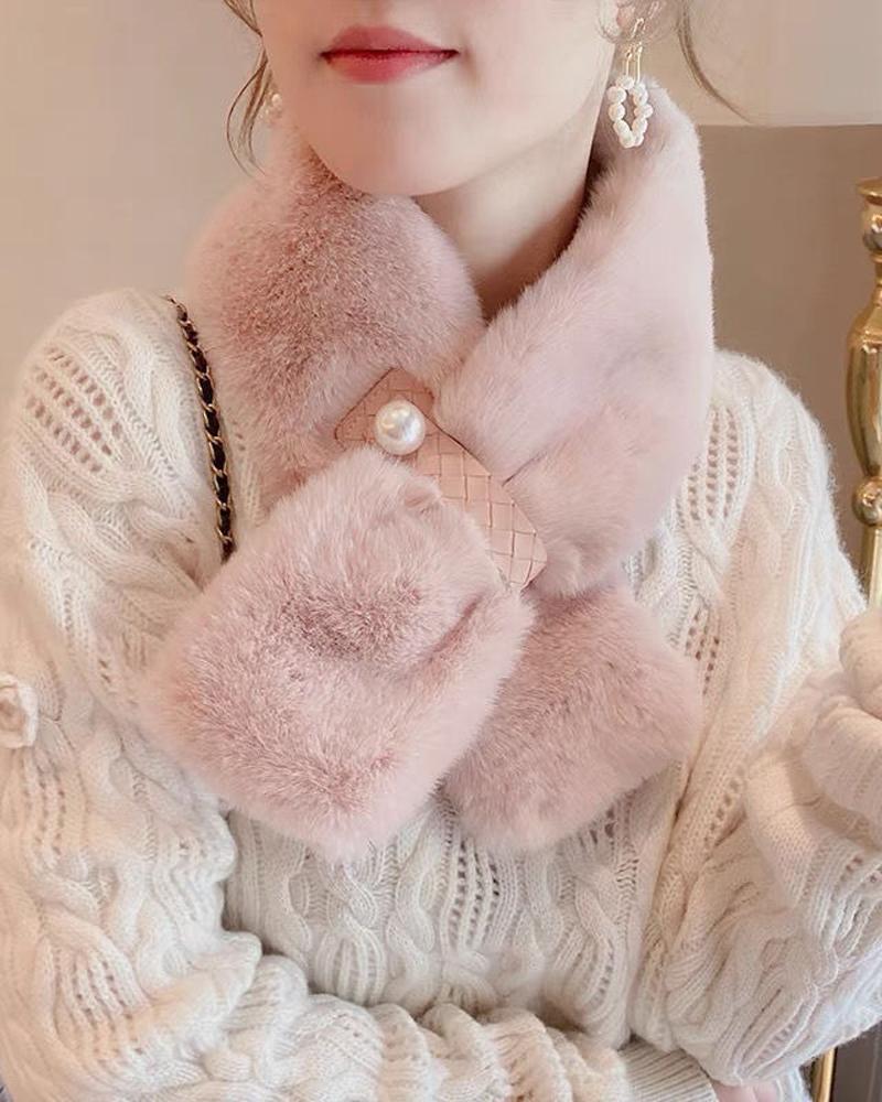 1pc Warm Soft Fuzzy Wrap Around Loophole Scarf, Pink