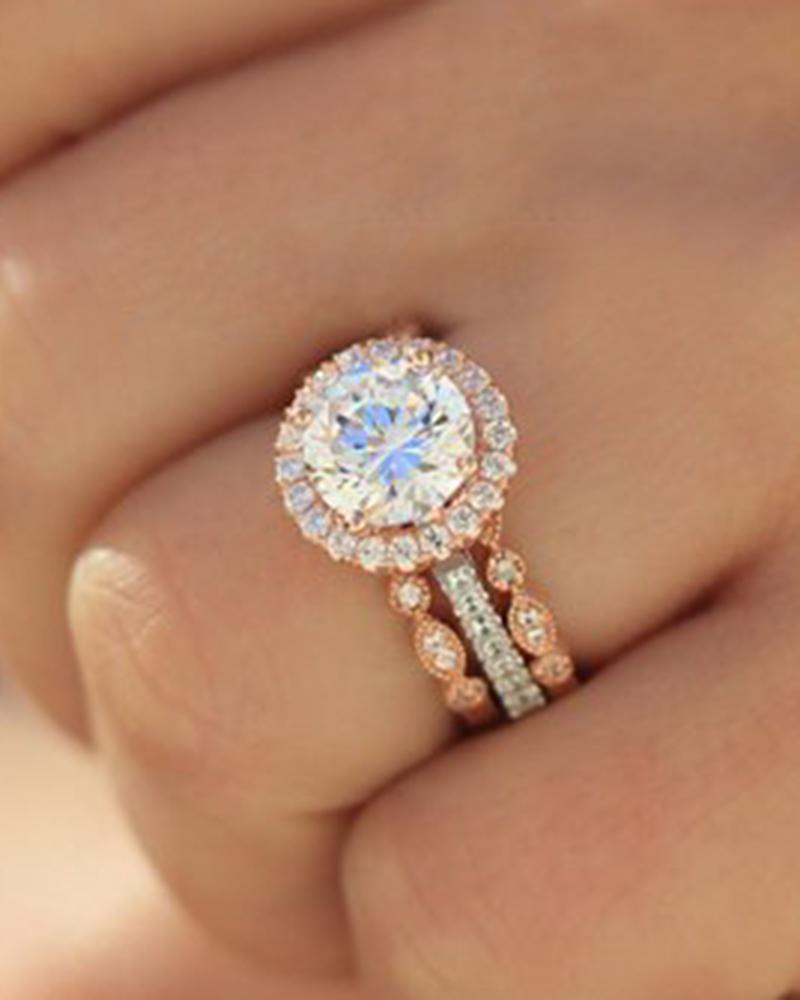 1pc Zircon Rhinestone Round Shaped Wedding Ring, Gold