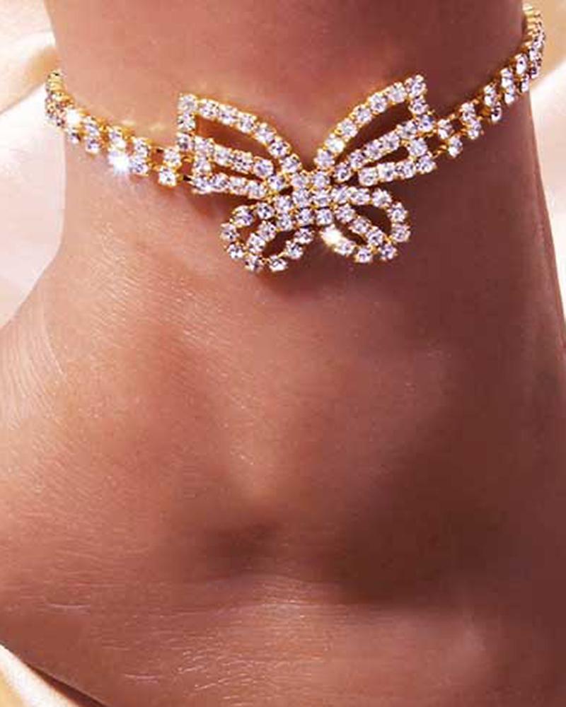 1pcs Allover Rhinestone Big Butterfly Pattern Chain Anklet, Gold