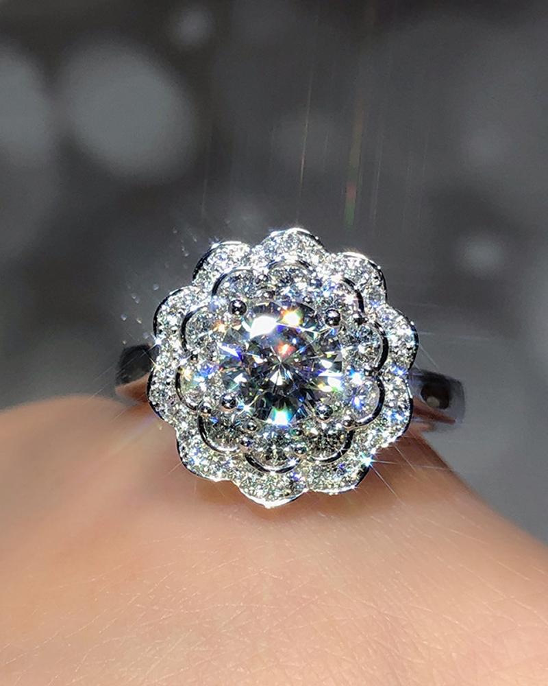 1pcs Floral Shaped Rhinestone Decor Ring, Silver
