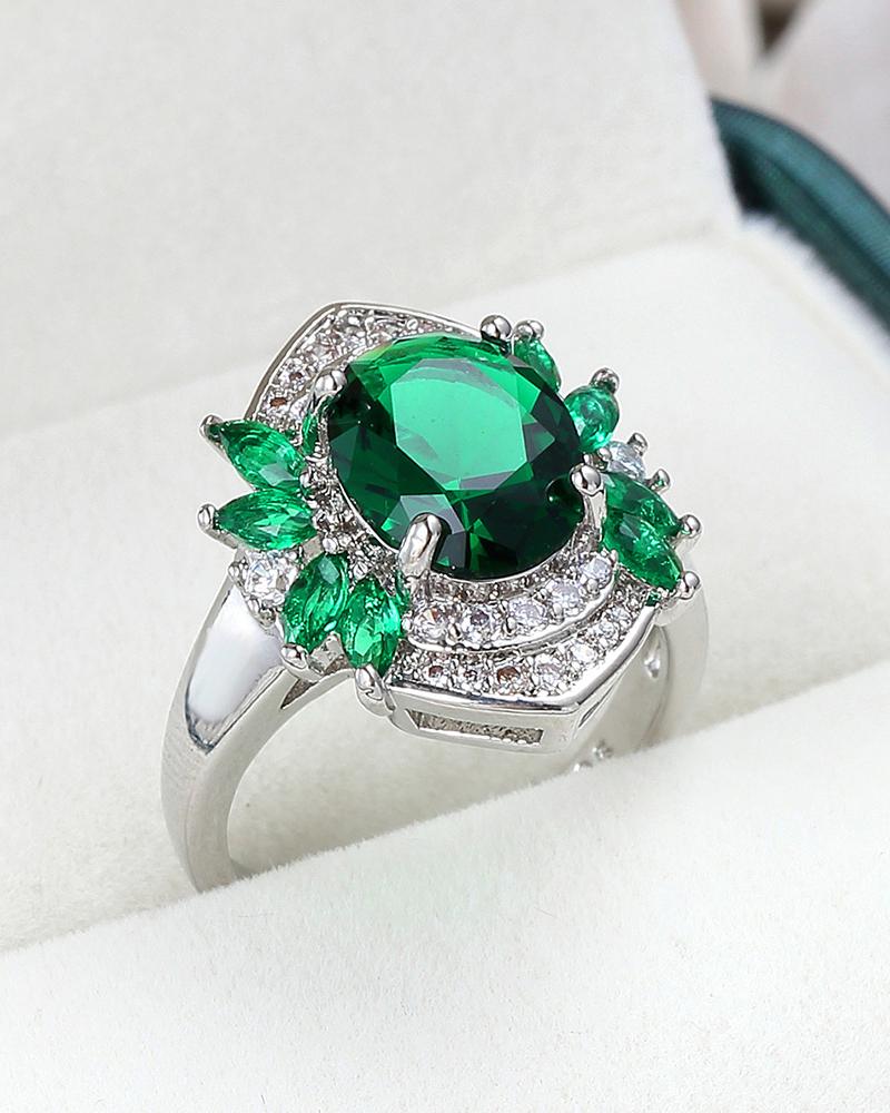 1pcs Geometric Pattern Rhinestone Decor Ring, Green