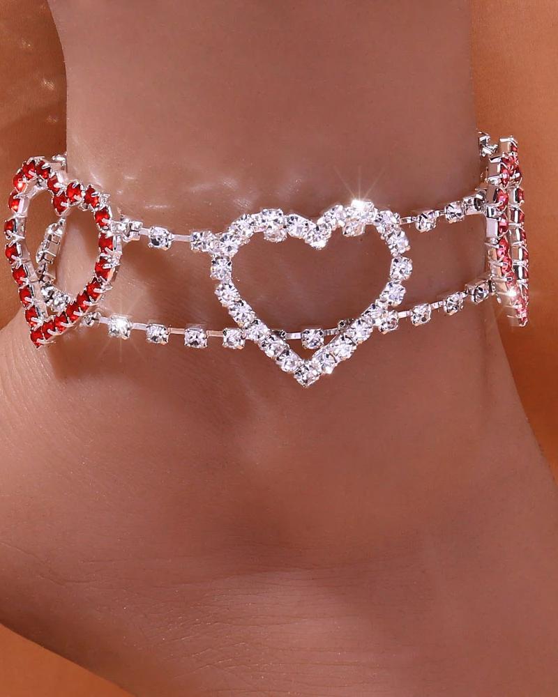 1pcs Heart Rhinestone Hollow-out Double Layered Anklet, Silver