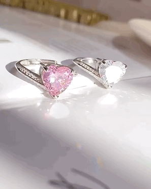 1pcs Heart Shaped Rhinestone Ring, Pink