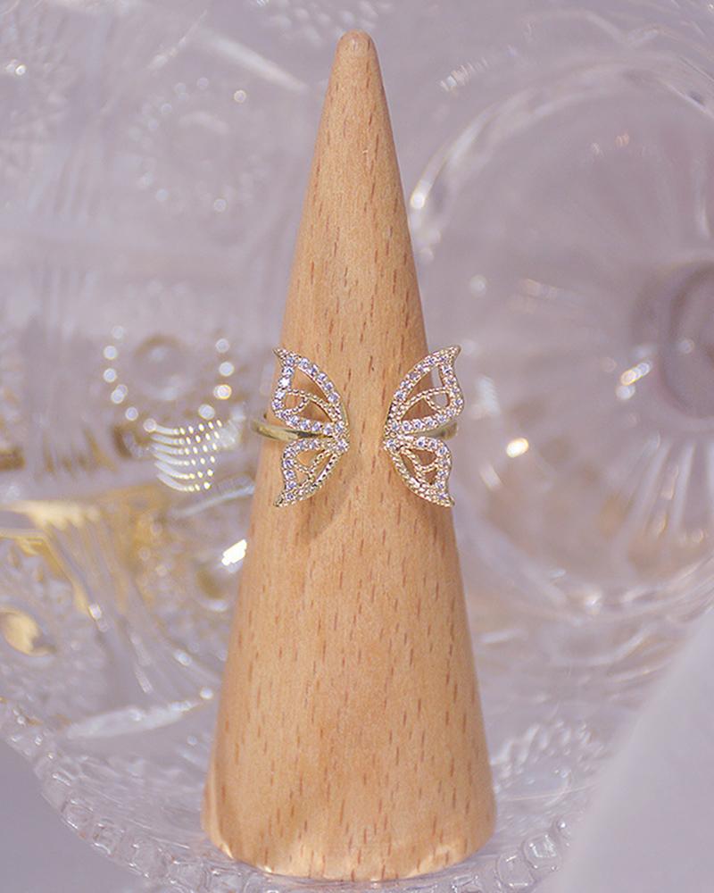 1pcs Rhinestone Butterfly Pattern Ring, Style1