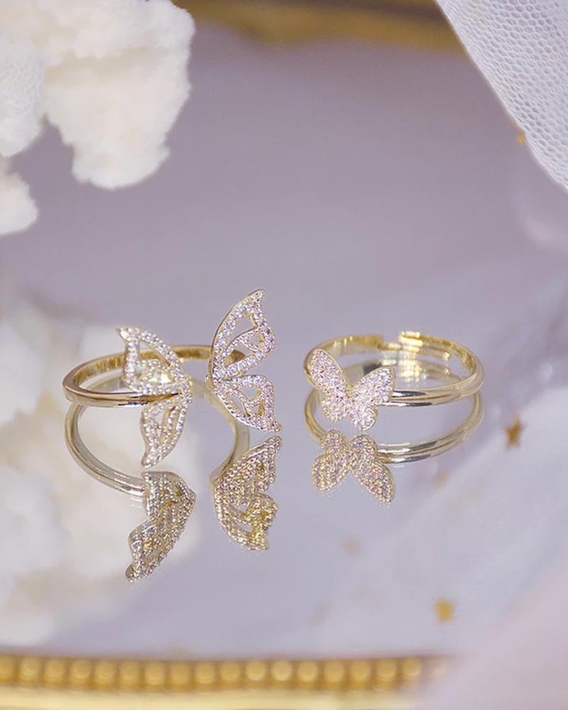 1pcs Rhinestone Butterfly Pattern Ring, Style2