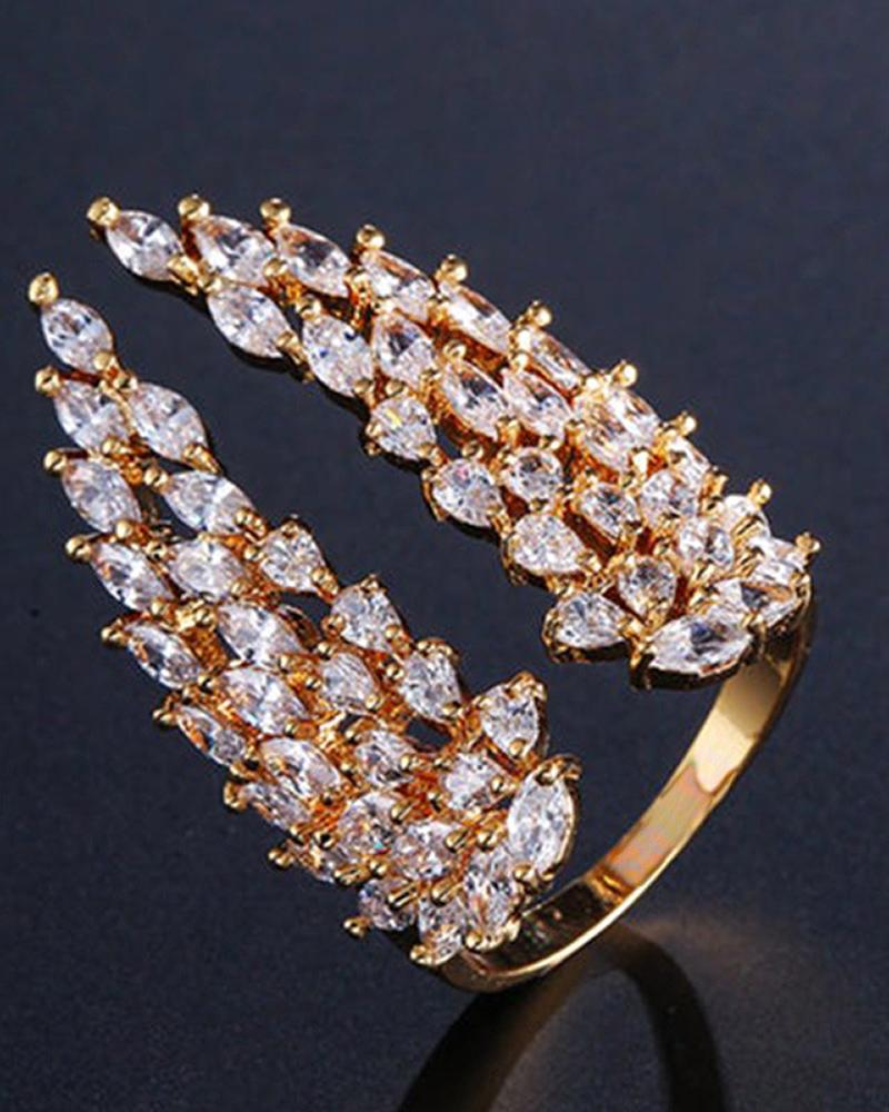 1pcs Rhinestone Wings Pattern Ring, Gold
