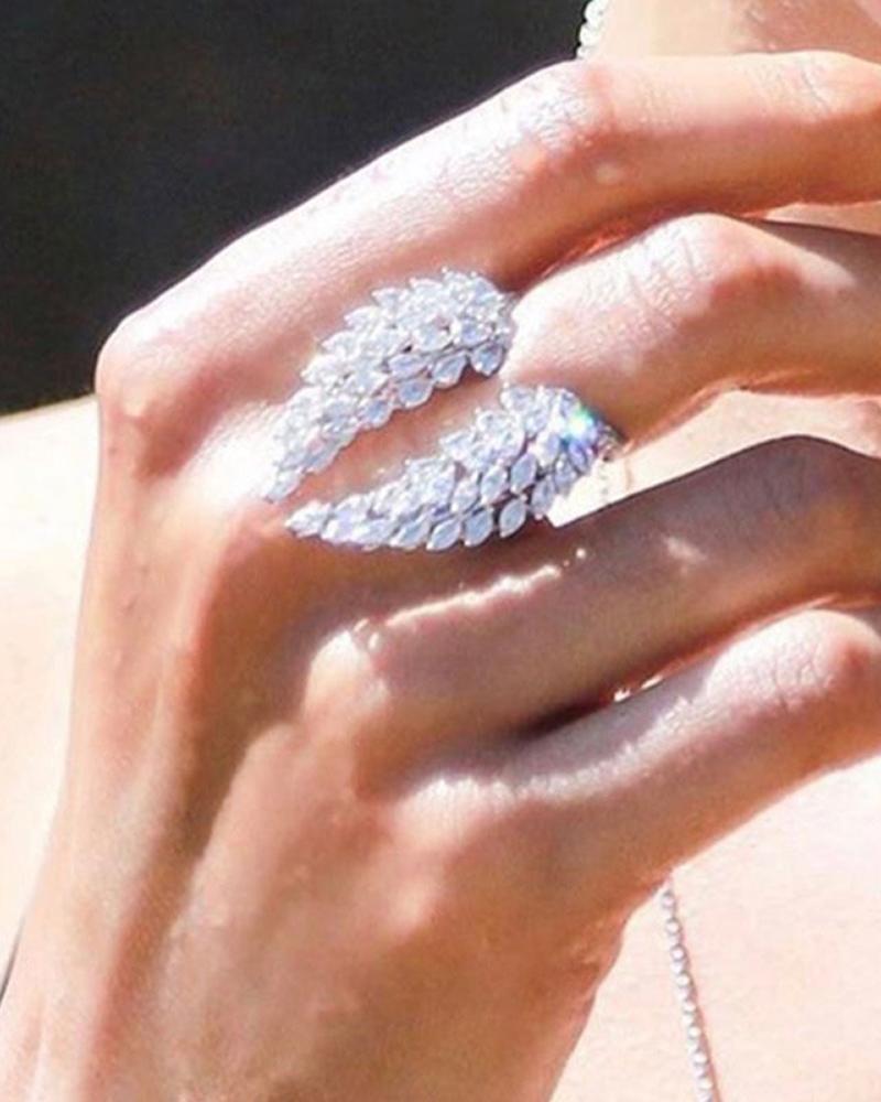 1pcs Rhinestone Wings Pattern Ring, Silver