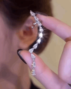 1pcs Water Drop Pattern Rhinestone Tassel Ear Climber, Silver