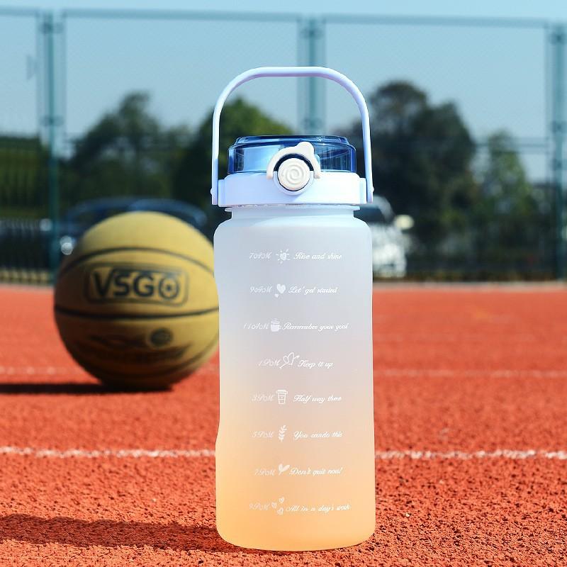 2л матовая спортивная бутылка для воды, мотивационный маркер времени, бутылки для питья, большая емкость, градиентная пластиковая чашка для воды для улицы 2.0L
