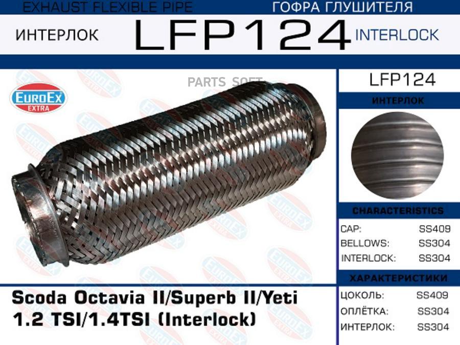 EUROEX LFP124 Гофра глушителя Scoda Octavia II/Superb II/Yeti 1.2 TSI/1.4TSI Interlock 1шт