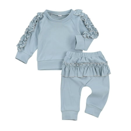 NECHOLOGY Baby Girl Clothes 2t Kids Baby Girls Long Ruffled Sleeve Solid Tops Sweats for Teen Girls Childrenscostume Light Blue 18-24 Months
