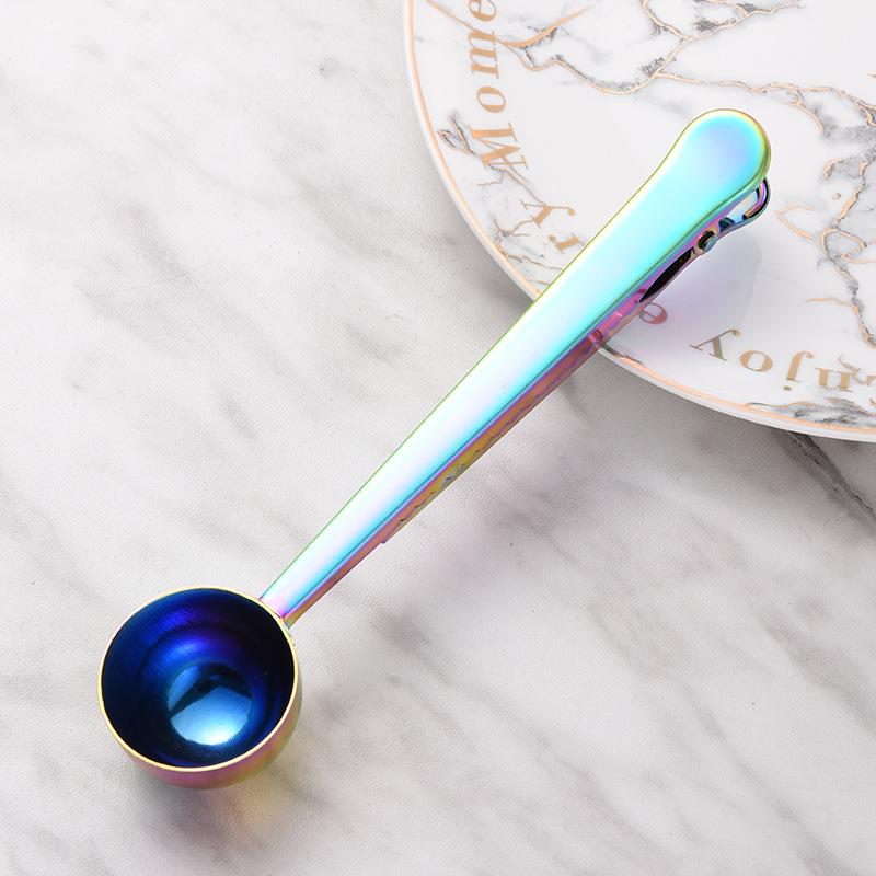 2 в 1 кофейная ложка из нержавеющей стали для кафе, декоративная печать, зажим для кухни, золотые аксессуары