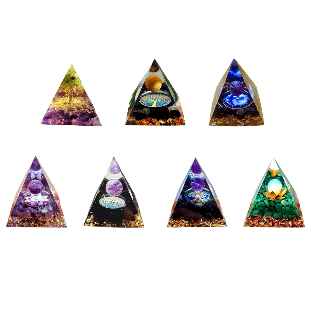 Resin Pyramid Crafts Jewelry Ogan Crystal Energy Tower Natural White Crystal Obsidian Expel Evil Healing Reiki Chakra Multiplier
