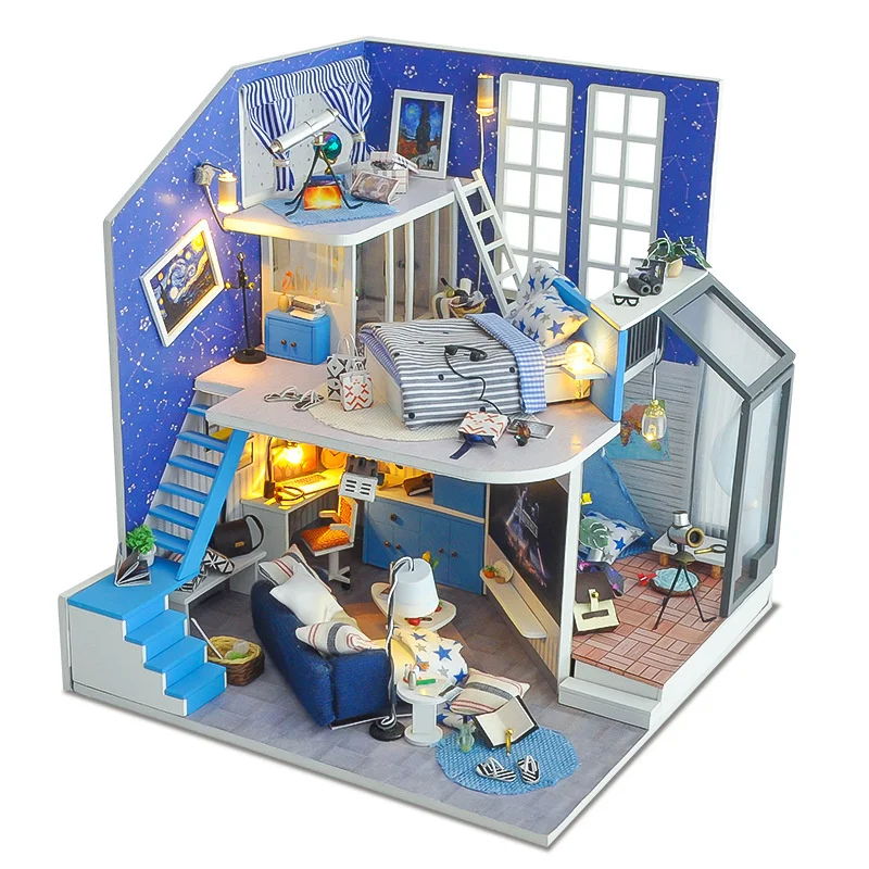 Деревянный миниатюрный кукольный домик «сделай сам», звезда, лофт, романтический домик, кукольный домик с комплектом мебели, игрушки для де...