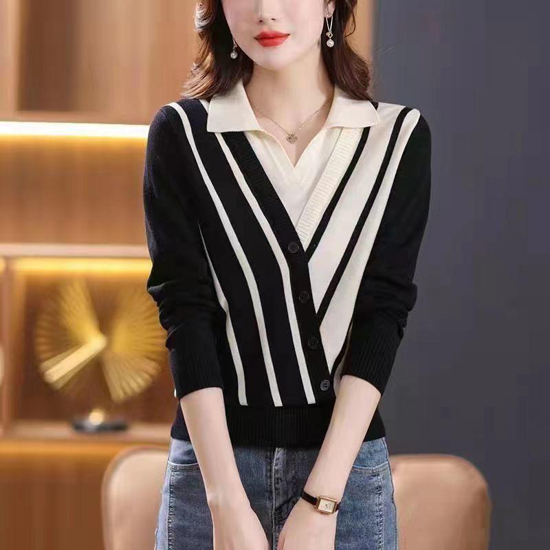 2 в 1 свитер с длинными рукавами в стиле колор-блок, стильный свитер с лацканами в рубчик для зимы и осени, женская одежда 3XL