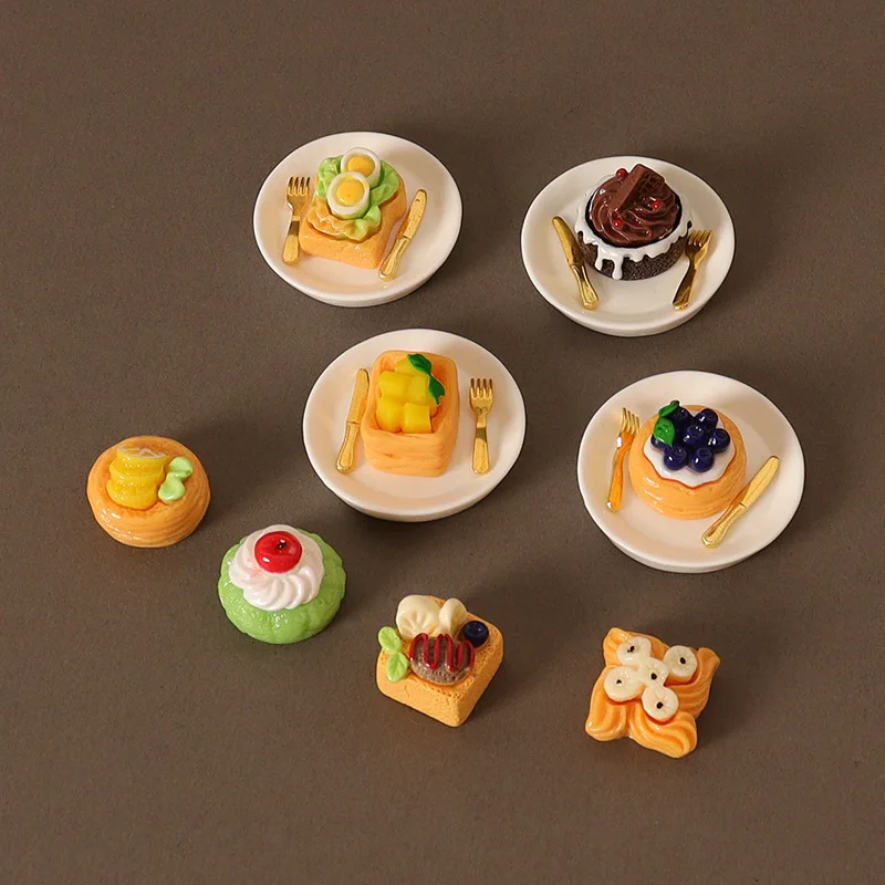 1/12 Dollhouse Miniature Cake Dishes Set Dollhouse Simulated Dessert Dolls House Kitchen Accessories Kid Pretend Play Toy