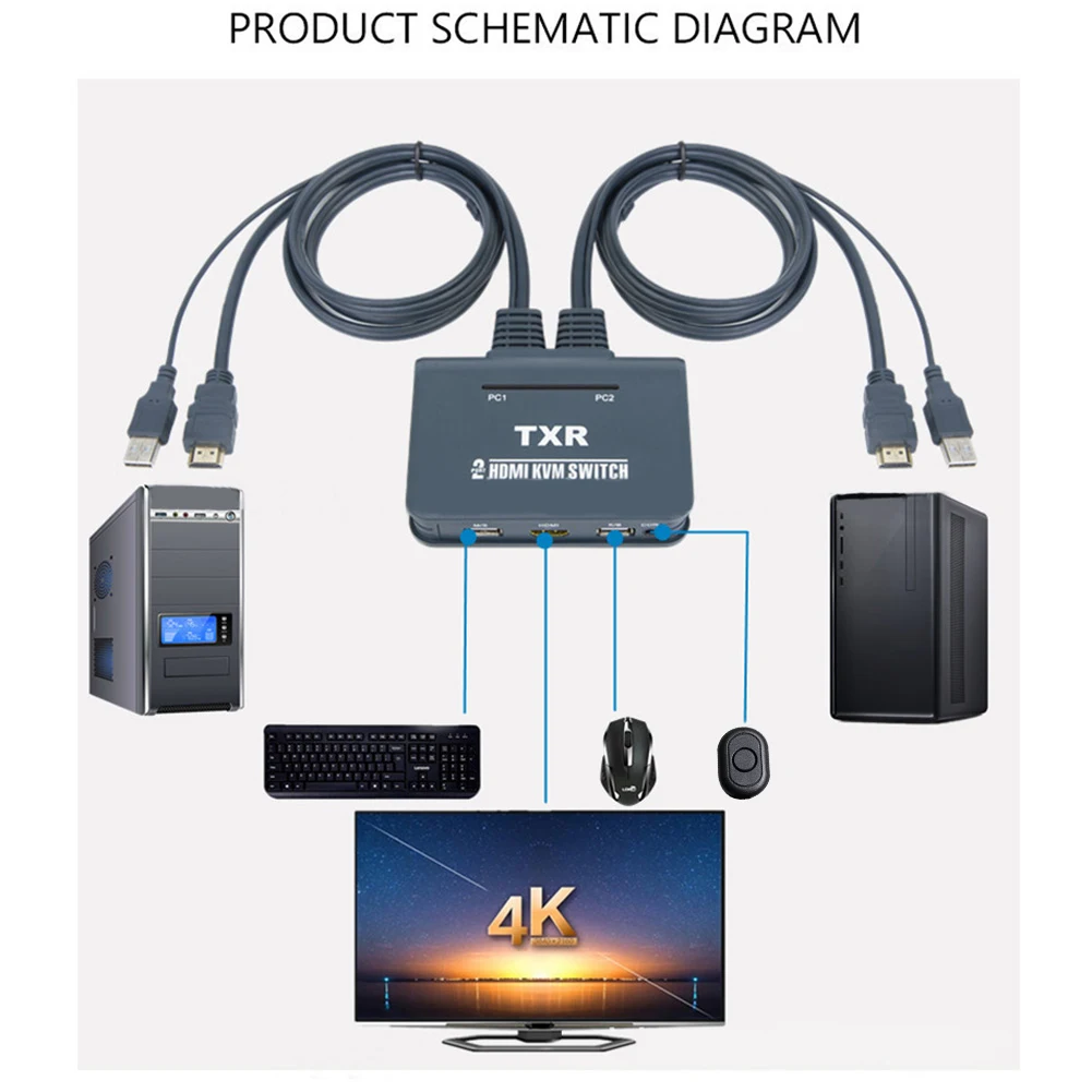 2-портовый кнопочный разветвитель, компьютерный квм-переключатель с кабелями, подключи и работай, контроллер для ноутбука и настольного ком...