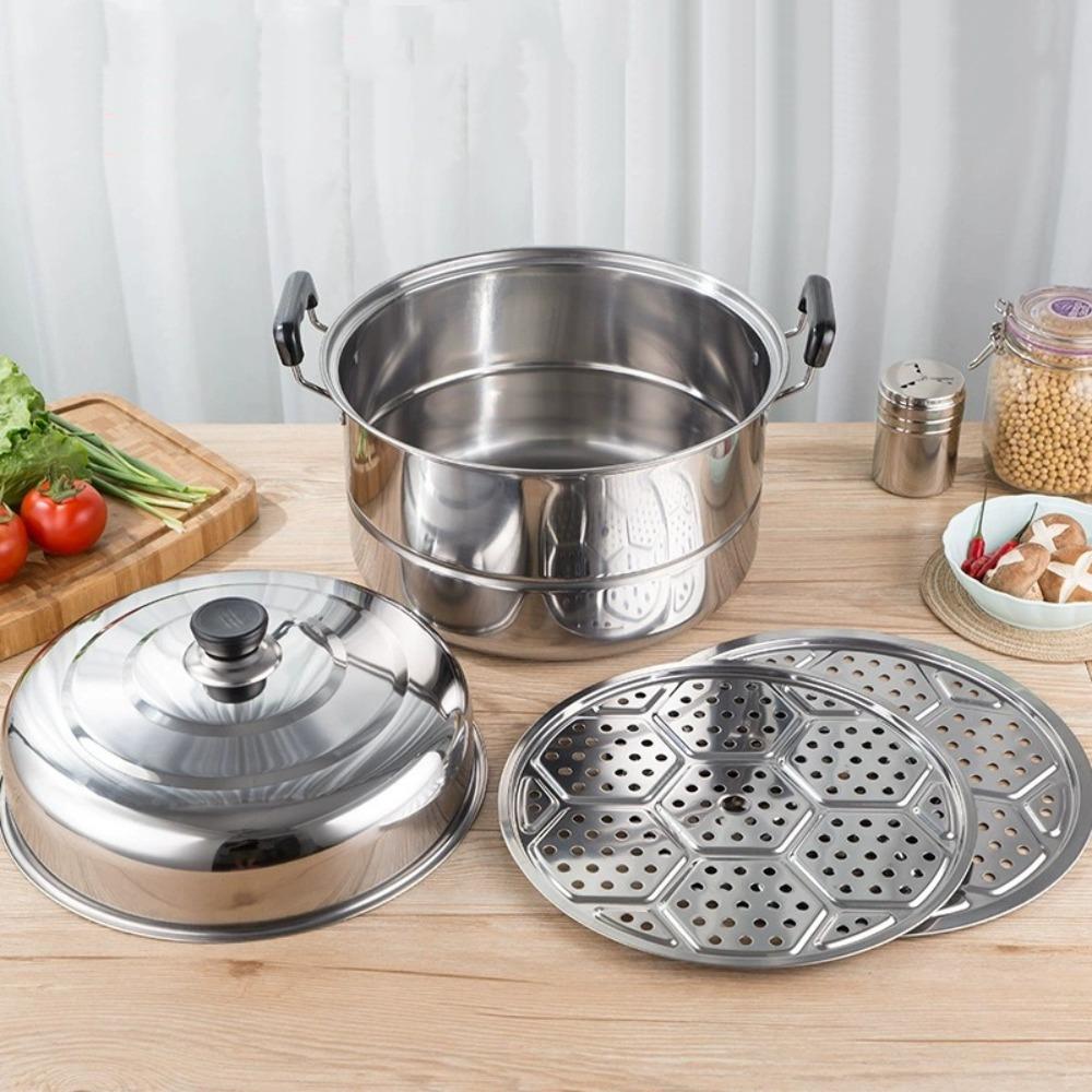 2-слойная пароварка из нержавеющей стали с подставкой для пара, кастрюля для варки супа, кухонные принадлежности для приготовления пищи 28cm