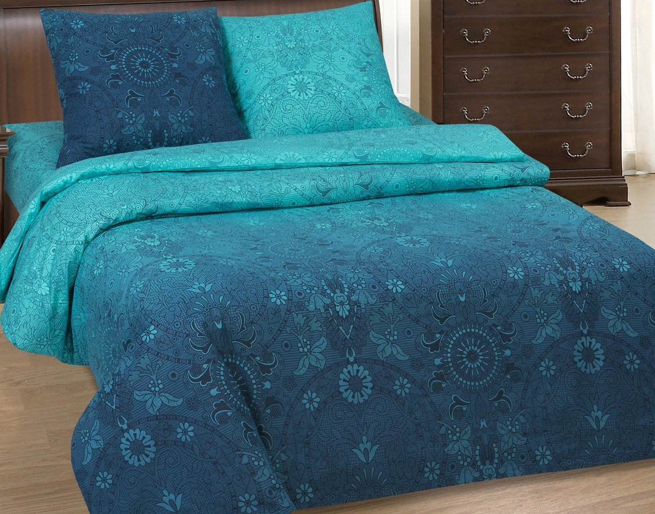 2-спальный, поплин, пододеяльник 175x215 см, простыня 160x200 см, наволочка 70x70 см, бирюзовый/синий
